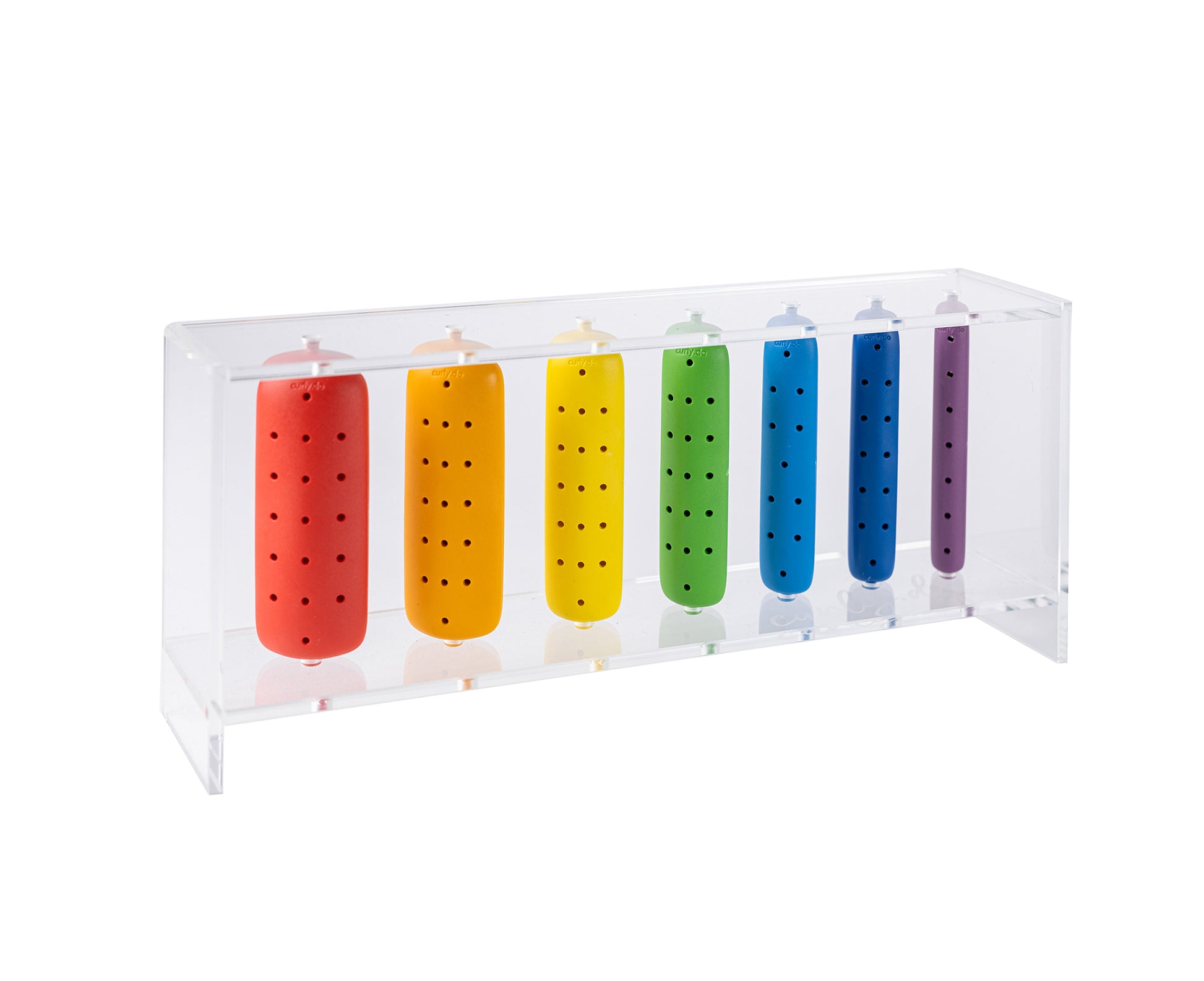 Der hochwertige Aufsteller besteht aus den sieben curly.do-Größen. Farblich sortiert im stilvollen Regenbogen-System. Hergestellt aus transparentem Acryl und mit dem original curly.do-Logo bedruckt, setzt er dein curly.do-System perfekt in Szene und macht Beratung für deine Kund:innen sichtbar und greifbar.